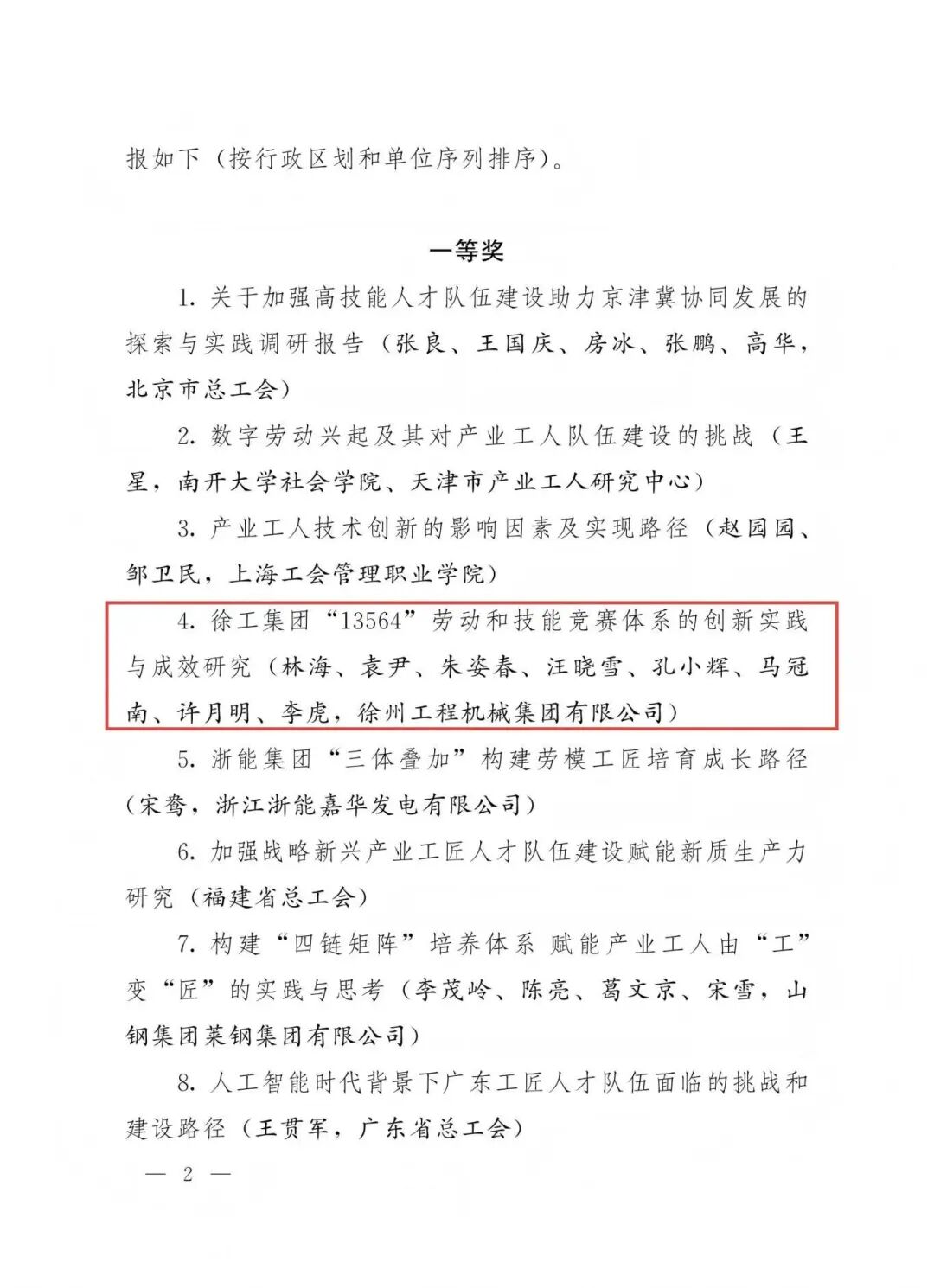 在本次大會主題征文活動中,徐工集團提報的《打造徐工“13564”勞動和技能競賽模型,拓展產業(yè)工人成長新賽道,跑出企業(yè)高質量發(fā)展加速度》在全國2463篇征文中脫穎而出,成功斬獲一等獎。