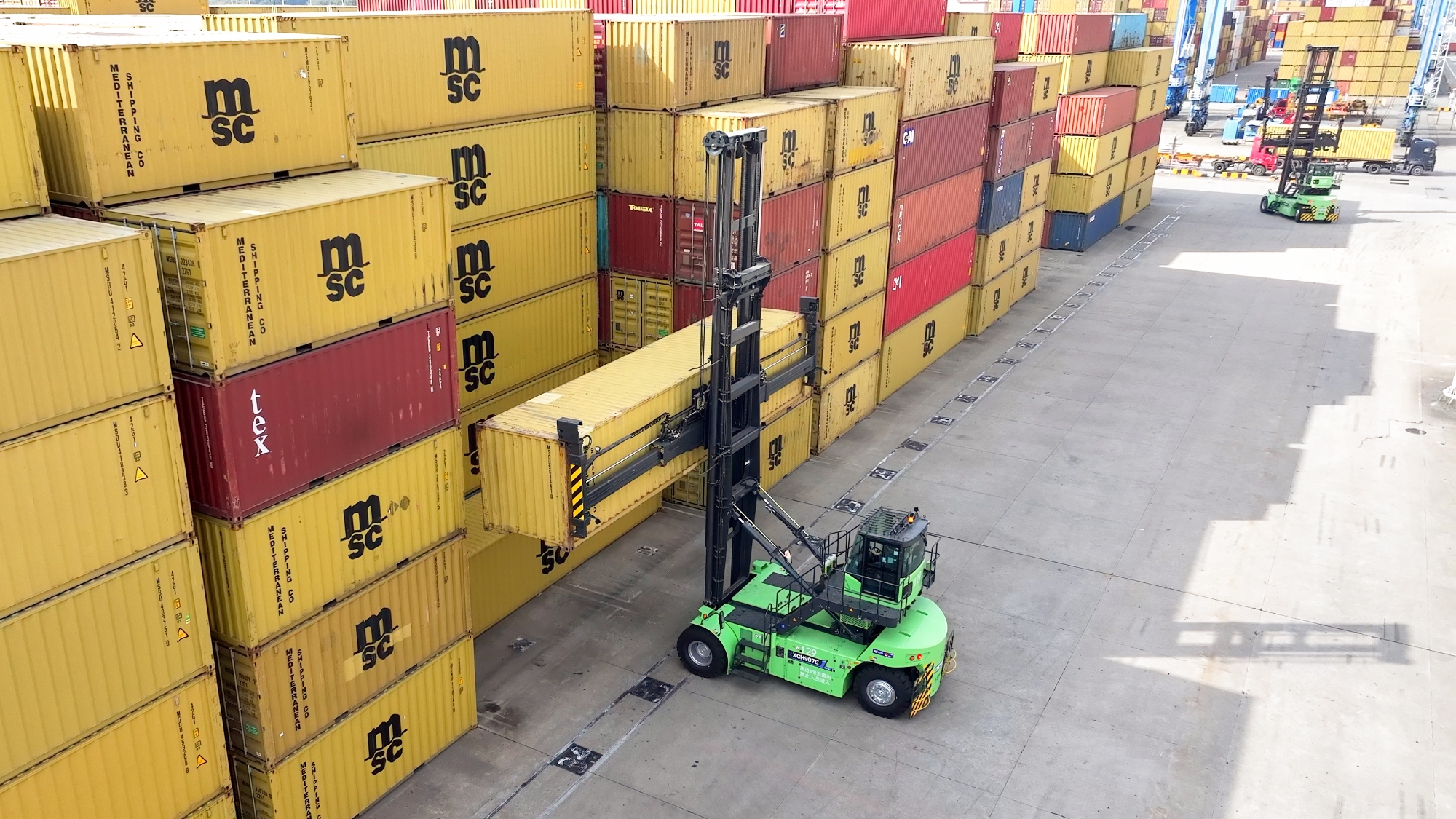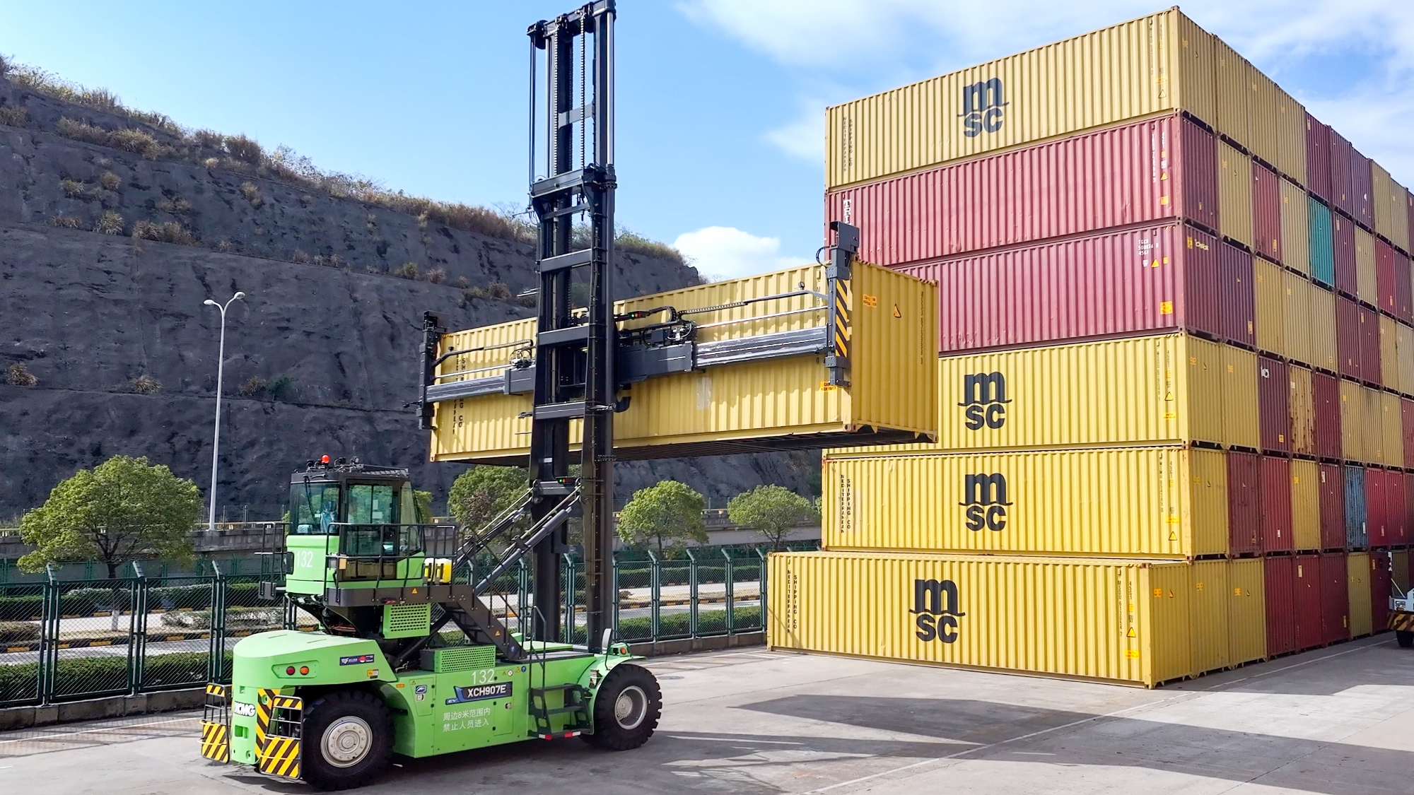 針對集裝箱堆存、轉運等核心場景,徐工打造了涵蓋電動正面吊、堆高機在內的成套純電裝備矩陣。其中,領跑行業的電動堆高機,已成為高端綠色碼頭的標配。在浙江海港的多處關鍵作業前沿,這套方案正構建高效、協同的智慧作業新生態。
