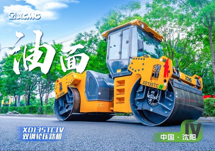 攤鋪工作結(jié)束后,由徐工XD135TCIV進(jìn)行壓實。這款13噸雙鋼輪壓路機(jī)作為油面的當(dāng)紅明星,采用雙頻雙幅振動系統(tǒng),前后輪可獨立振動;同時,其內(nèi)置的軟起軟停功能使壓路機(jī)起步、停車均平穩(wěn)進(jìn)行,避免路面、擁包,可進(jìn)一步提升路面壓實質(zhì)量,在提高路面平整度方面效果拔群。