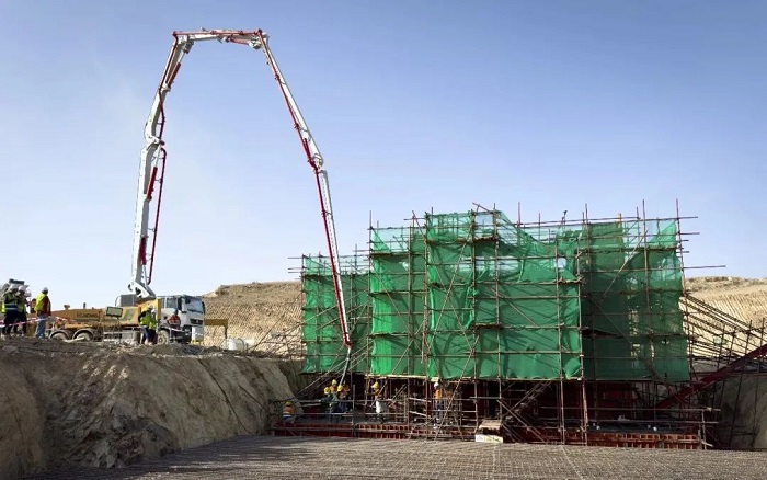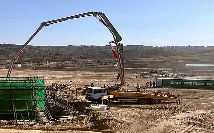 此次工程不僅面臨施工設備和材料供應奇缺等難題,且厄籍職工沒有大型混凝土澆筑經驗,加之項目澆筑需要長時間、大方量的持續性作業,施工困難重重。徐工HB43V泵車和徐工攪拌車協力共進,完美應對此次澆筑任務。