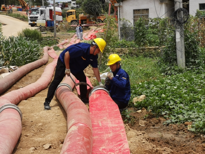 面對(duì)嚴(yán)峻的救援形勢(shì),7月12日到達(dá)現(xiàn)場(chǎng)后,救援隊(duì)伍便緊鑼密鼓開(kāi)始整備,商議排水方案、調(diào)試車輛、鋪設(shè)水帶、檢查管路……為搶抓救援時(shí)間,在制定了嚴(yán)謹(jǐn)細(xì)致的排水方案后,現(xiàn)場(chǎng)采用“兩班倒”的方式,在近40℃的高溫下24小時(shí)不停機(jī)作業(yè)。