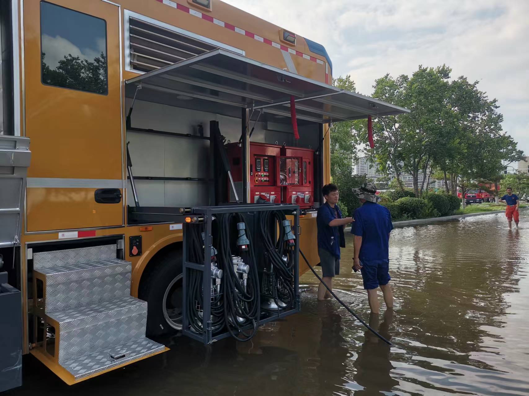 7月中旬,河南省普降大到暴雨,降雨時(shí)間長(zhǎng)、強(qiáng)度大、影響廣,多市發(fā)布暴雨Ⅰ級(jí)預(yù)警,人民生命財(cái)產(chǎn)安全面臨巨大威脅。接到有關(guān)單位緊急通知后,徐工迅速集結(jié)車(chē)輛人員,出動(dòng)PS40B泵組式排水搶險(xiǎn)車(chē),攜帶足量隨車(chē)器材,連夜動(dòng)身前往河南商丘,火速開(kāi)展救援。