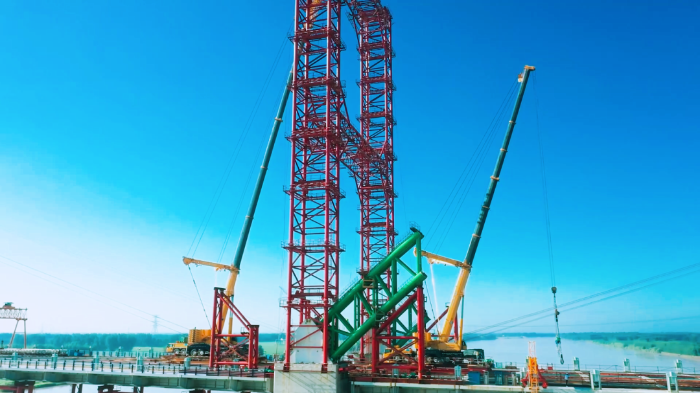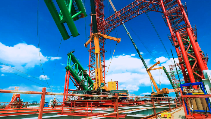 據(jù)悉,拱肋要經(jīng)過200余次吊裝拼接,才能在橋上形成一個完整的拱圈,這三臺徐工超級起重機(jī)XCA500將在項目駐守一年。項目建成后,該黃河大橋?qū)⒊蔀閲鴥?nèi)規(guī)模最大的下承式鋼管混凝土系桿拱橋,對改善區(qū)域交通條件,推動黃河流域高質(zhì)量發(fā)展具有重要意義。