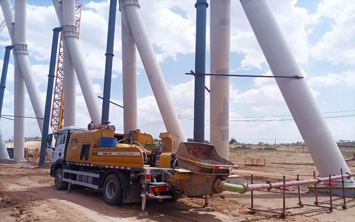 項目亮點之一的間冷塔,采用了創新的鋼管混凝土X柱結構,單柱高達30米,重達51.9噸。然而,隨著泵送高度的攀升,混凝土黏度急劇增加,泵送過程中極易出現憋壓熄火現象,對施工設備提出了前所未有的要求。