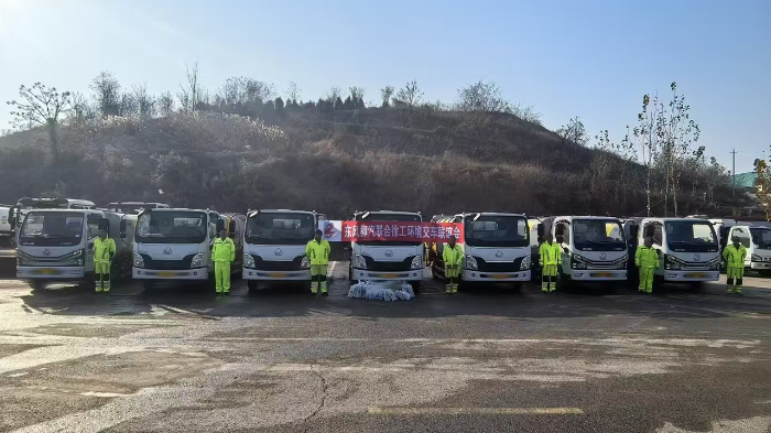 12月6日,在山東濟(jì)南交車(chē)現(xiàn)場(chǎng),車(chē)輛整齊排列,徐工向當(dāng)?shù)亟桓读藘煞N不同車(chē)型的后裝壓縮式垃圾車(chē),這些車(chē)輛將協(xié)同作業(yè),肩負(fù)起濟(jì)南市生活垃圾的收集和轉(zhuǎn)運(yùn)工作。