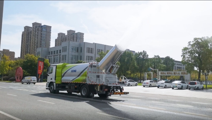 徐工XGH5181TDYXBEV 純電動(dòng)多功能抑塵車在宿遷上海中路噴霧保濕,讓環(huán)境更美好。
