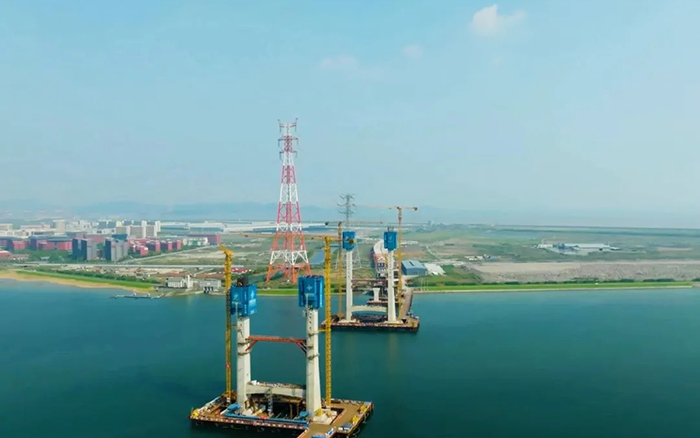 該項目建設規模大,結構類型多,科技含量高。全線海域橋梁長度約9公里,海上作業工程量大,項目施工區域內氣象、水文、地質條件復雜,同時還面臨航運繁忙,海上施工組織難度大等挑戰。