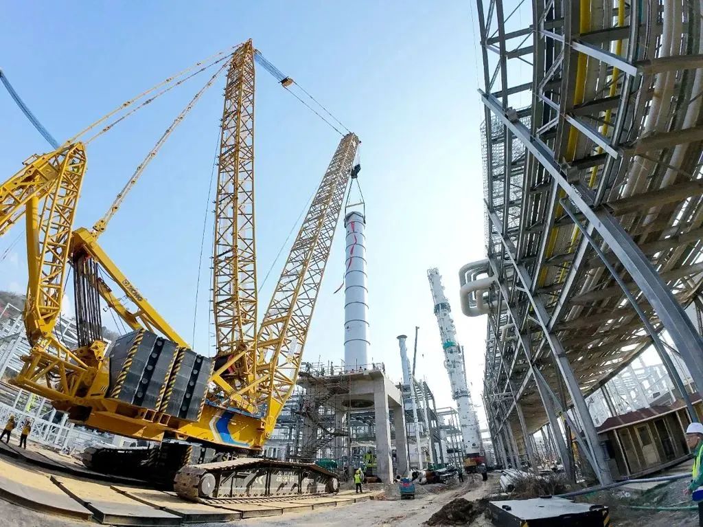 在中油一建某精細化施工基地,全球最大噸位履帶起重機XGC88000進行了超強“鋼鐵舉重”。