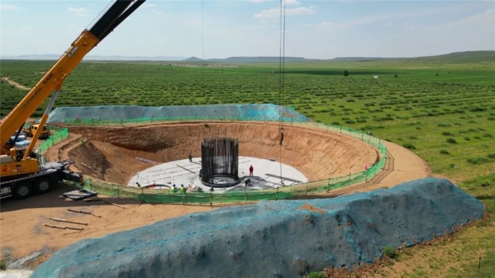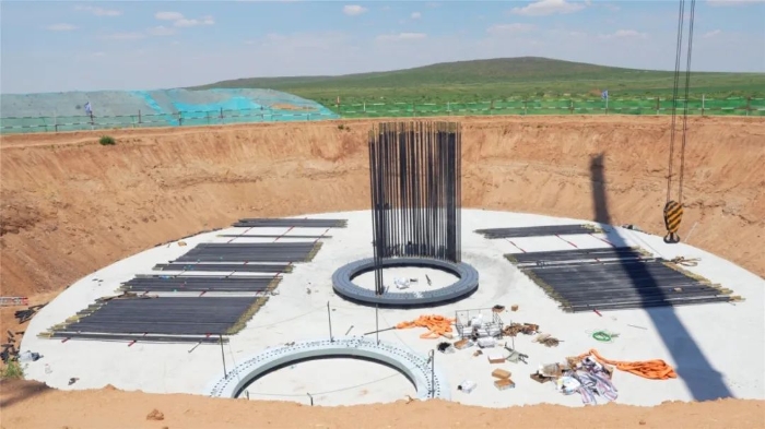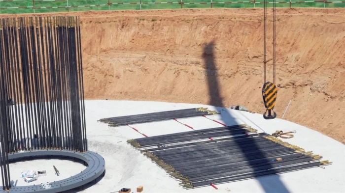 此次進行的是風(fēng)電基礎(chǔ)吊裝,重達17噸的鉚盤穩(wěn)落在基坑,214根鉚桿密集插裝,每一根都必須精準插入孔位。