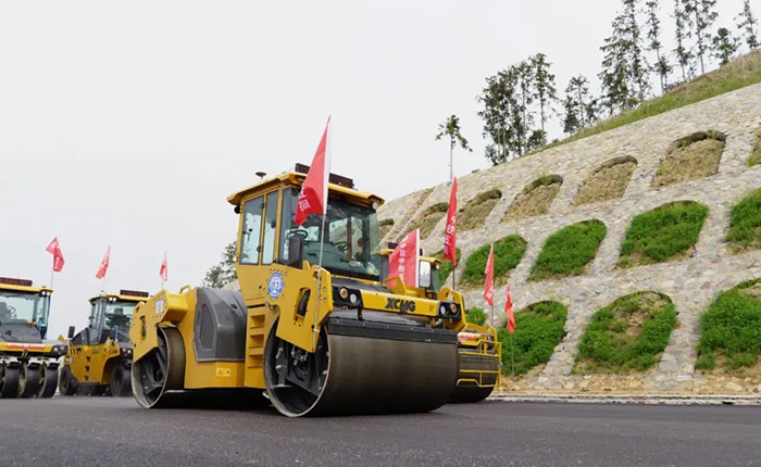 商丘沿大別山高速公路是河南省 16 條東西橫向通道之一,路線全長約 220 公里。在沿大別山高速公路,首次運用徐工道路機械無人攤鋪 + 北斗高精定位智能系統,完成全線首段路面中面層試驗段鋪筑。