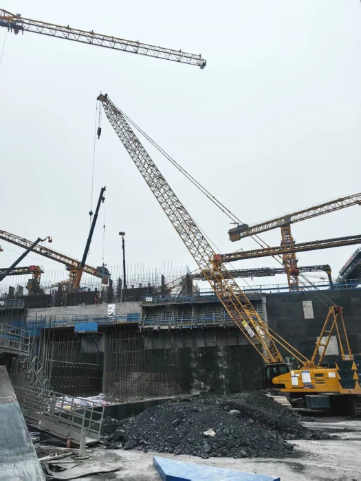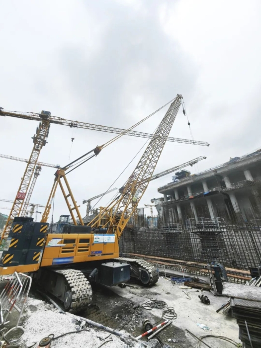 在如此高難度的施工環境中,XGC110A展現出的卓越穩定性和微動性,成為項目攻堅克難的核心利器。其精準的操控猶如“穿針引線”,在鋼筋森林的方寸之地游刃有余,有效保障了多工序協同推進,為工程高效推進提供了堅實保障。