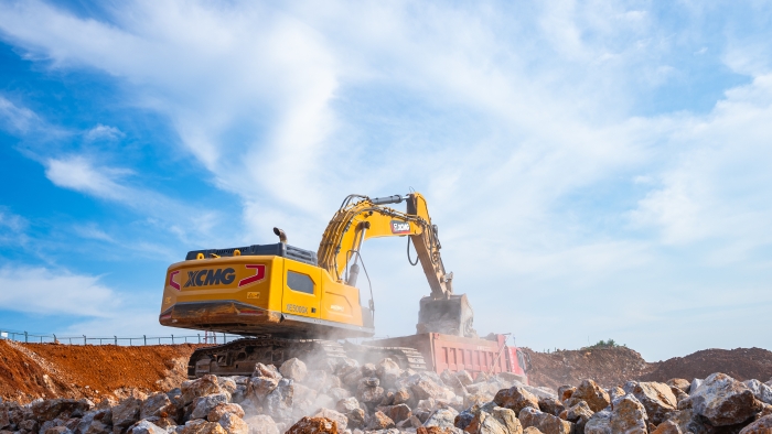 湖北宜城礦區深處,白云巖資源富集,開采作業正酣。徐工XE500GK液壓挖掘機以主力姿態投身于繁忙的開采隊伍當中,以卓越性能與可靠品質,贏得施工方高度認可,成為這片堅硬巖層中名副其實的“掘金巨無霸”。